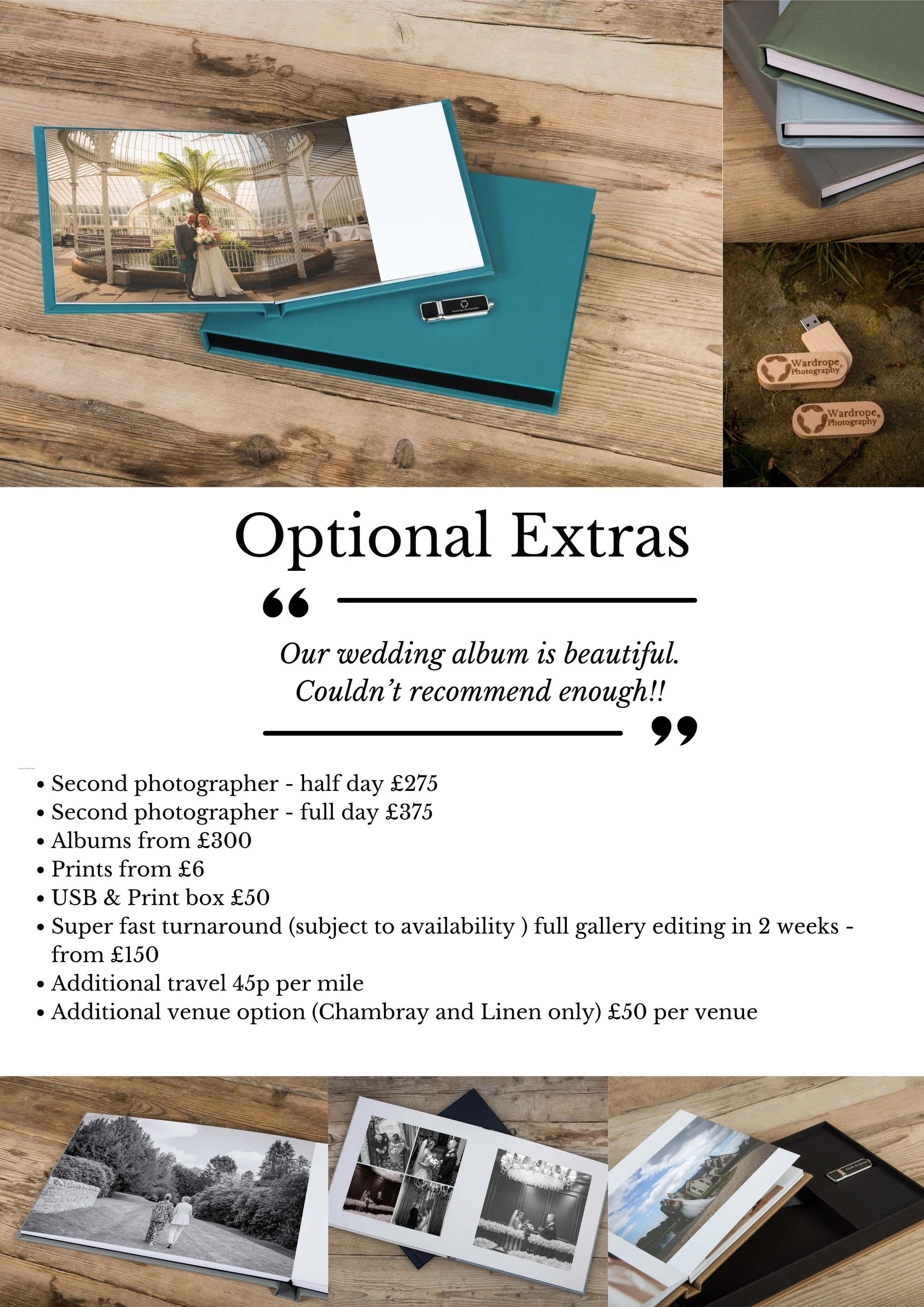 Optional extras such as Albums, prints and digital can be added on separately.